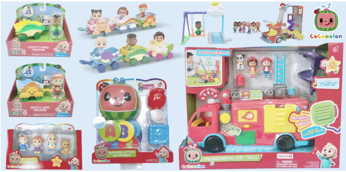 Cocomelon interactive learning toys designed for preschool play, role-play scenes, and early developmental activities.