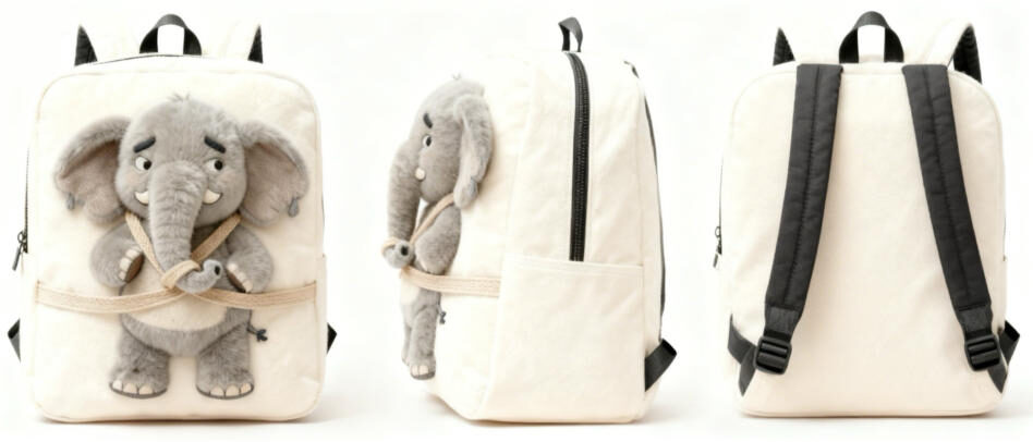 This elephant character backpack is ideal for OEM and ODM customization programs. For instance, color, size, facial features, and packaging options meet various market needs. The design’s simplicity supports large-scale production and flexible modifications for branding or promotional goals.