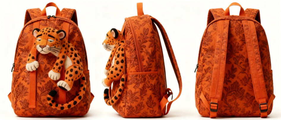 In addition, the bright orange floral accents and integrated 3D leopard character enhance shelf visibility and support brand storytelling. Therefore, this backpack is ideal for daily use, retail display, and themed product collections.