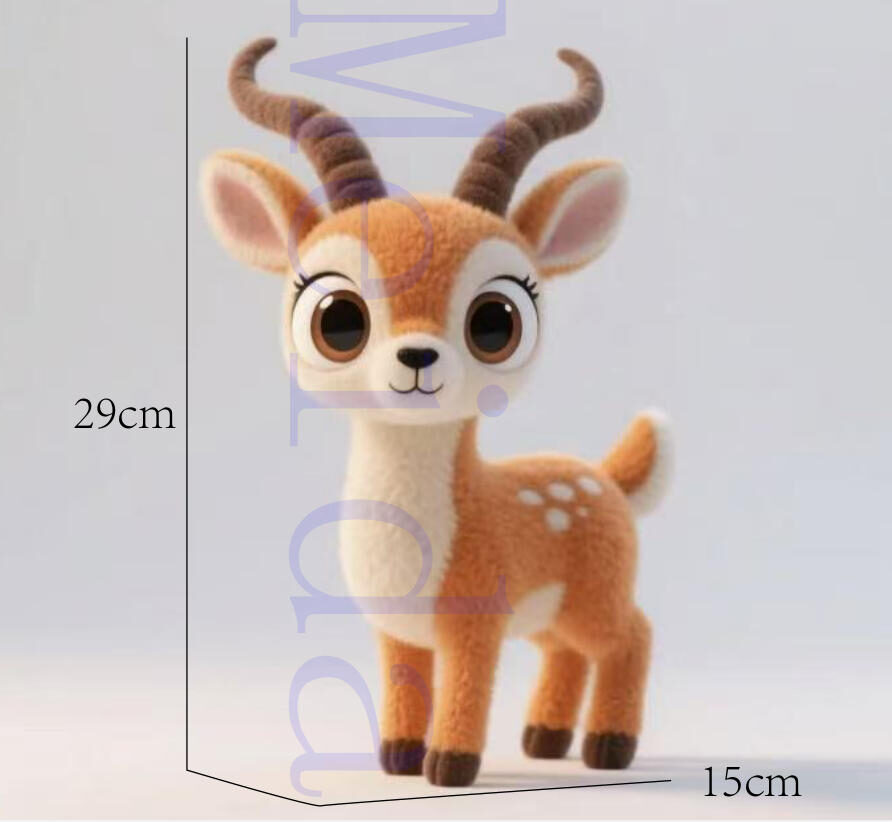 Fuzzy deer plush toy featuring soft texture, slim proportions, gentle character styling, OEM ODM production support.