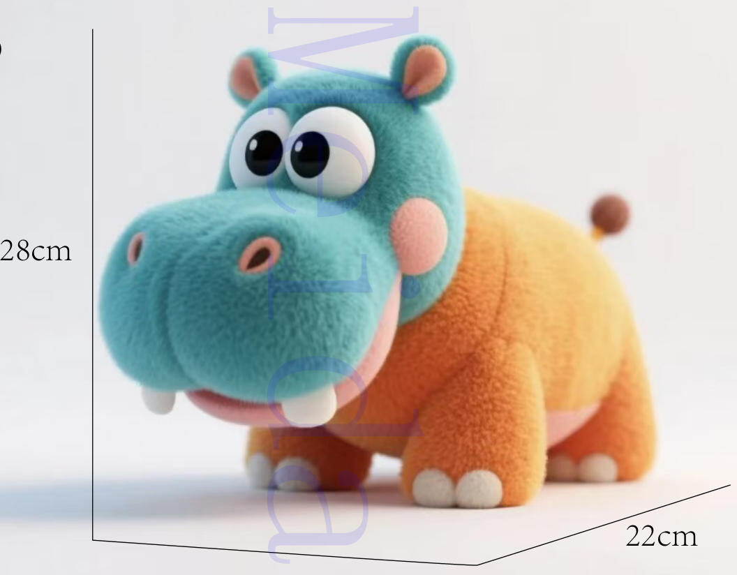 Fuzzy hippo plush toy featuring soft texture, rounded proportions, friendly character styling, OEM ODM production support.