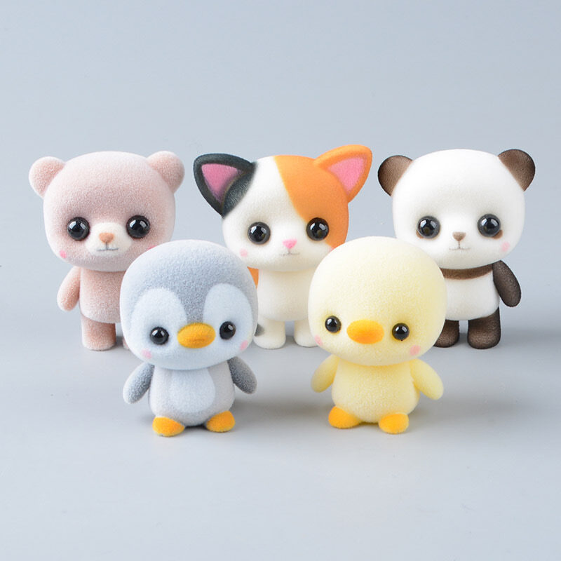 Mini Flocked Animal Figurines Series includes 9 soft-touch animal characters designed for display, gifting, and collectible assortments.
