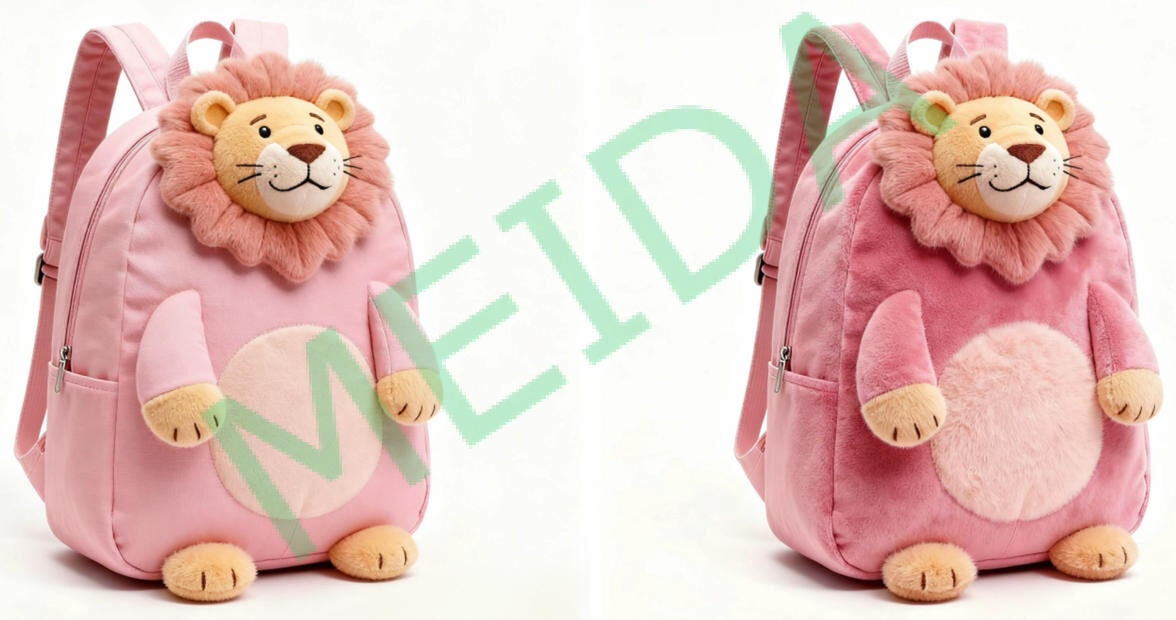 Pink Lion Backpack Duo introduces a gentle character backpack concept built around softness, balance, and everyday friendliness. This product includes two coordinated versions presented in smooth fabric and plush textures, both sharing the same pink lion character design. By focusing on calm expression and rounded form, the backpack delivers visual warmth that suits daily use, gift programs, and character-focused collections.