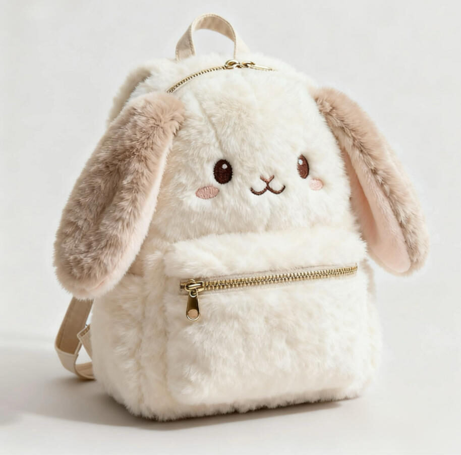 The white bunny plush backpack fits naturally into lifestyle retail, plush accessory collections, and gift-focused product lines. It supports daily outings, light carry needs, and casual use scenarios without appearing overly decorative or seasonal.